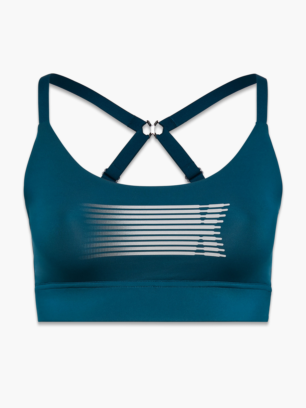 Stay one step ahead in our Band-It Low-Impact Sports Bra, featuring an X logo graphic at center front, a wide, encased elastic underband, and adjustable cross-back straps.
