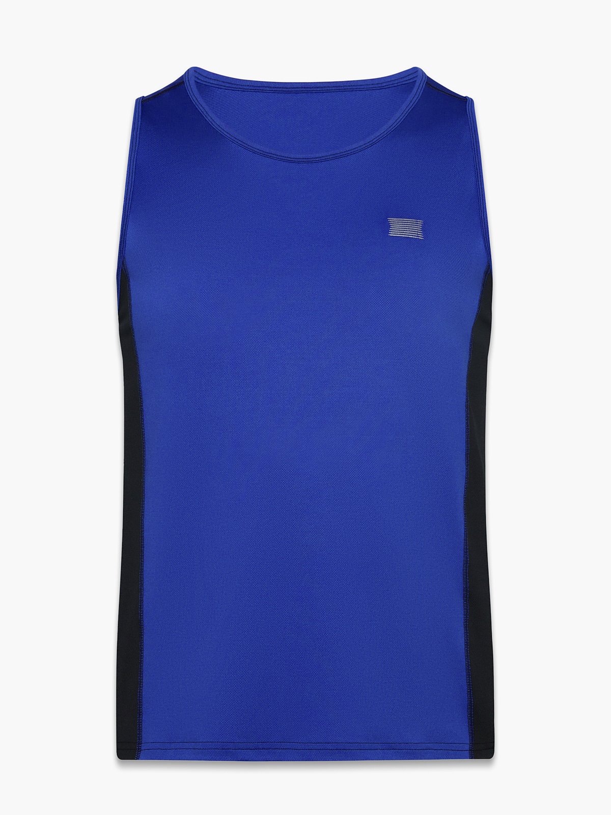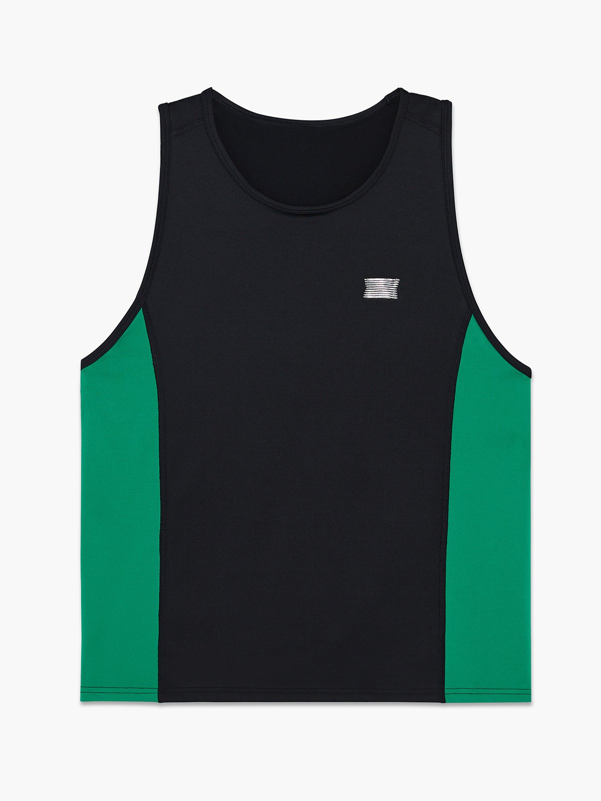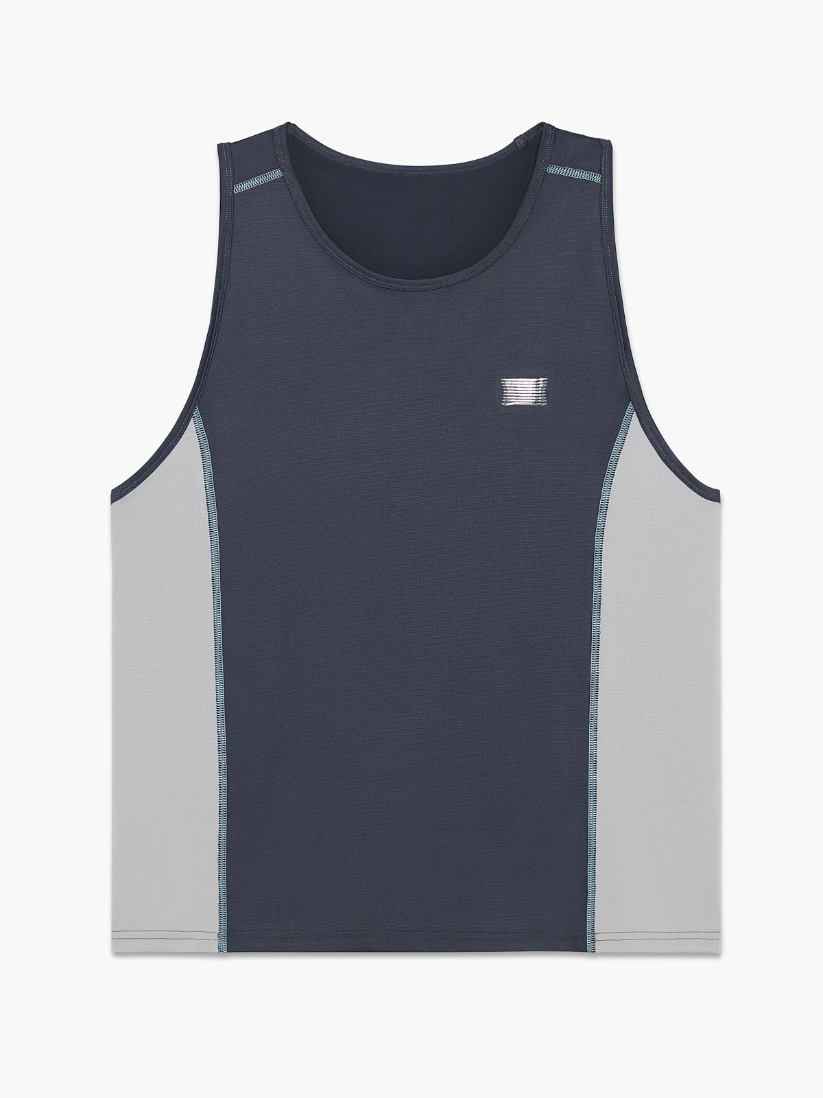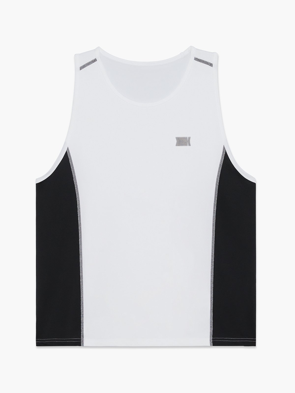Our Breakout Base Layer Tank features colorblock side panels and a metallic X logo graphic at the left chest.