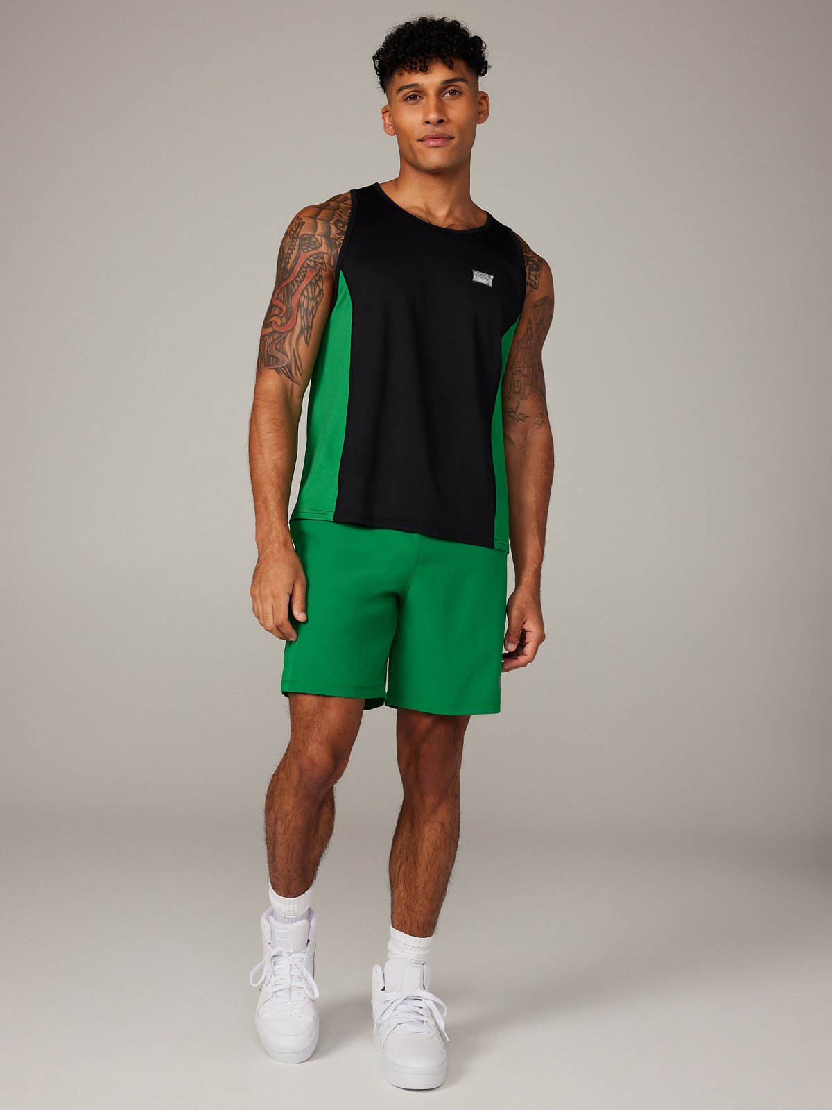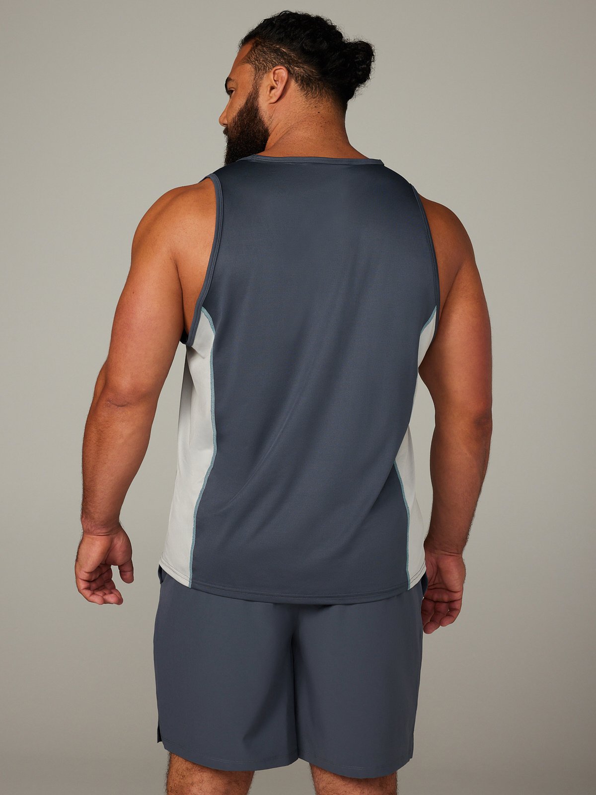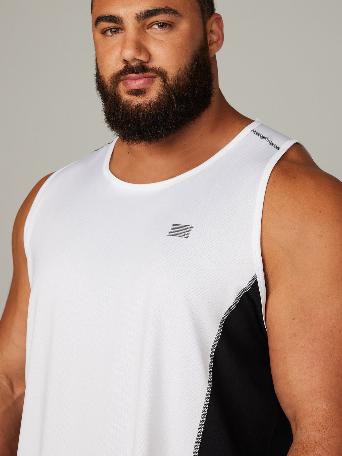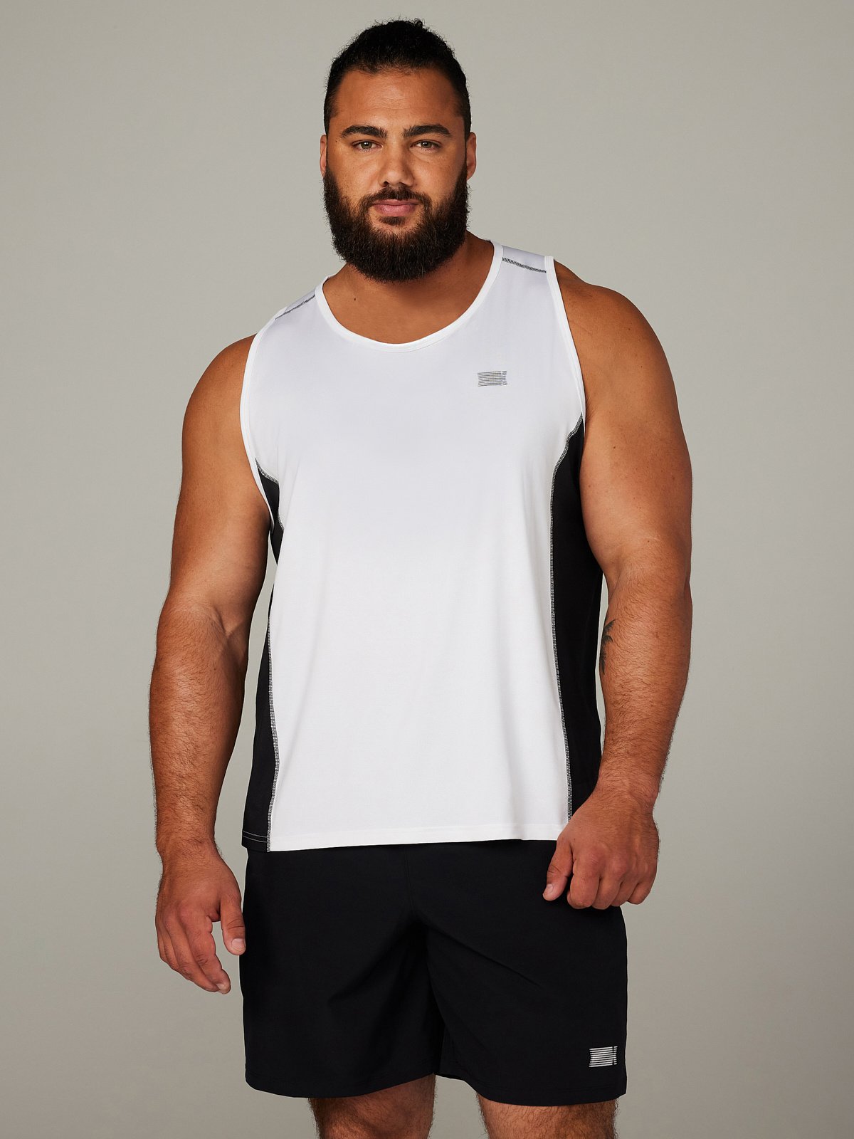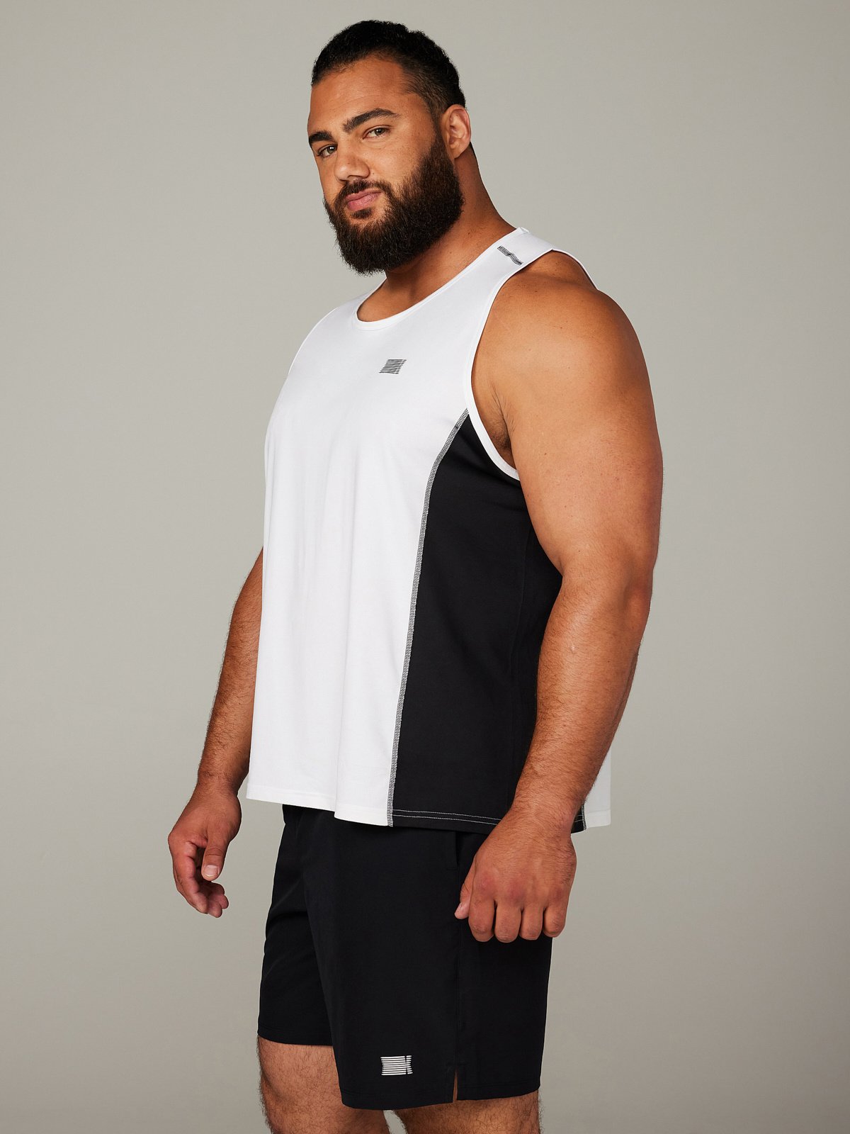 Our Breakout Base Layer Tank features colorblock side panels and a metallic X logo graphic at the left chest.