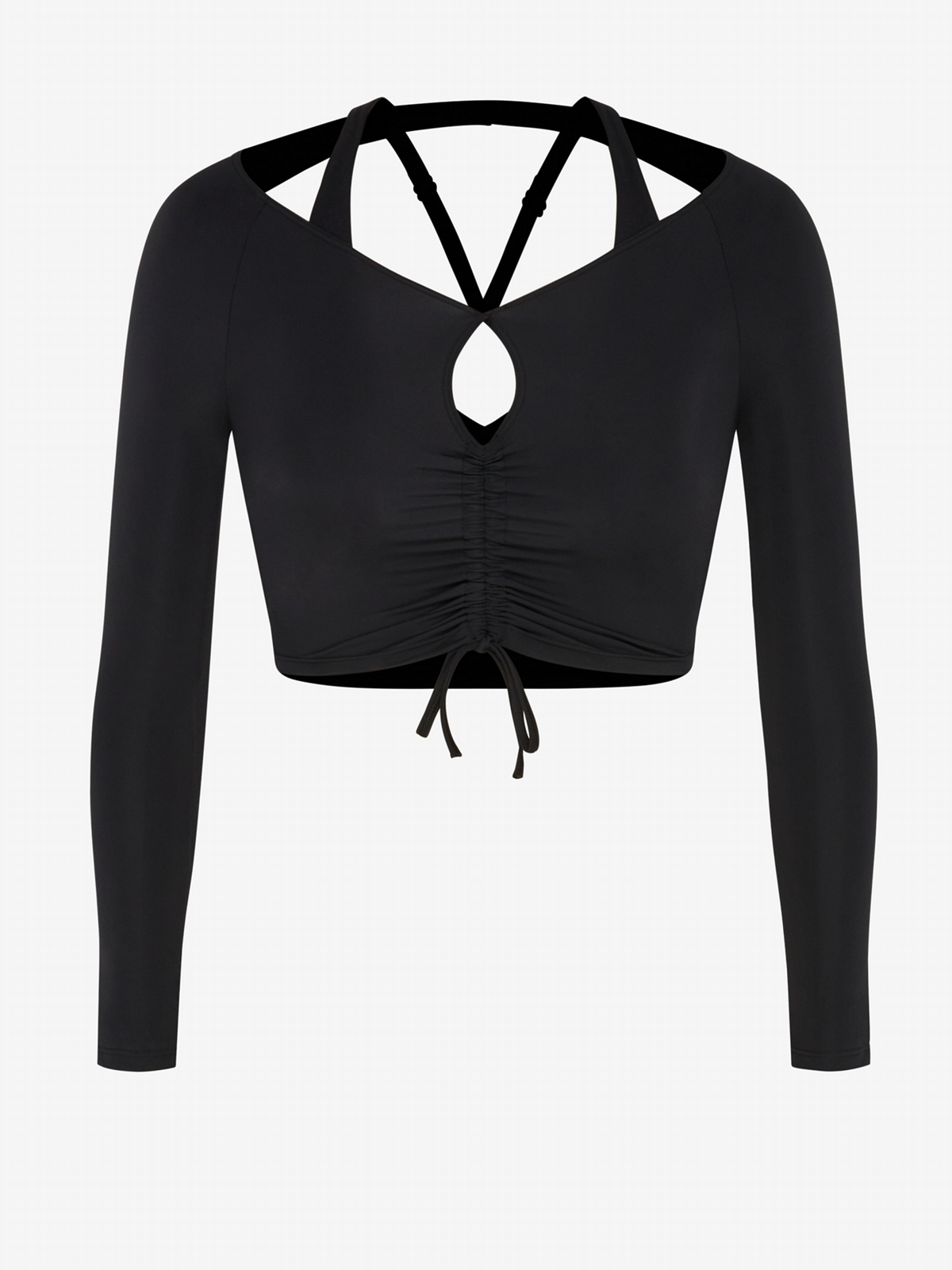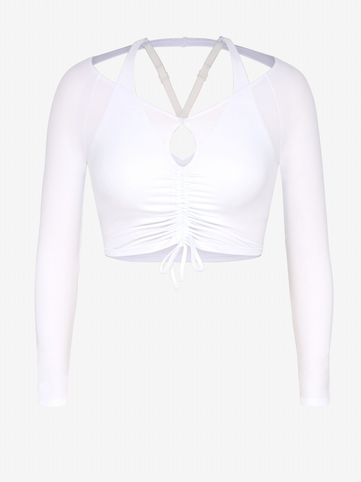 Navigate the urban jungle and beyond in our City Girl Hike Long-Sleeve Shelf-Bra Top, featuring a comfortable jersey fabric, and a stunning front keyhole cutout with adjustable drawcords.