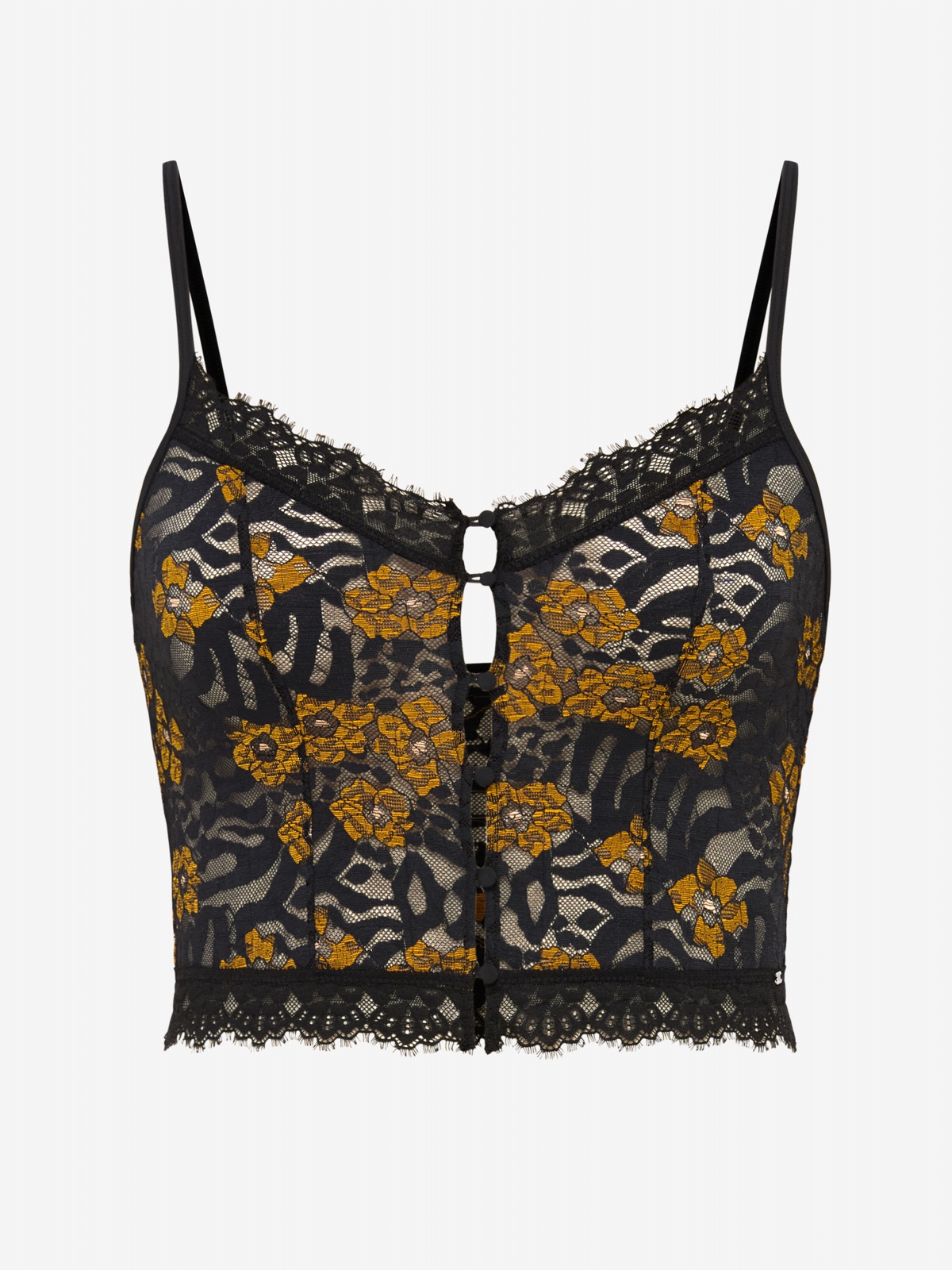 Here, kitty kitty. Embrace your instincts in our Feline Floral Cami featuring sexy and sheer leopard mesh with floral lace details.
