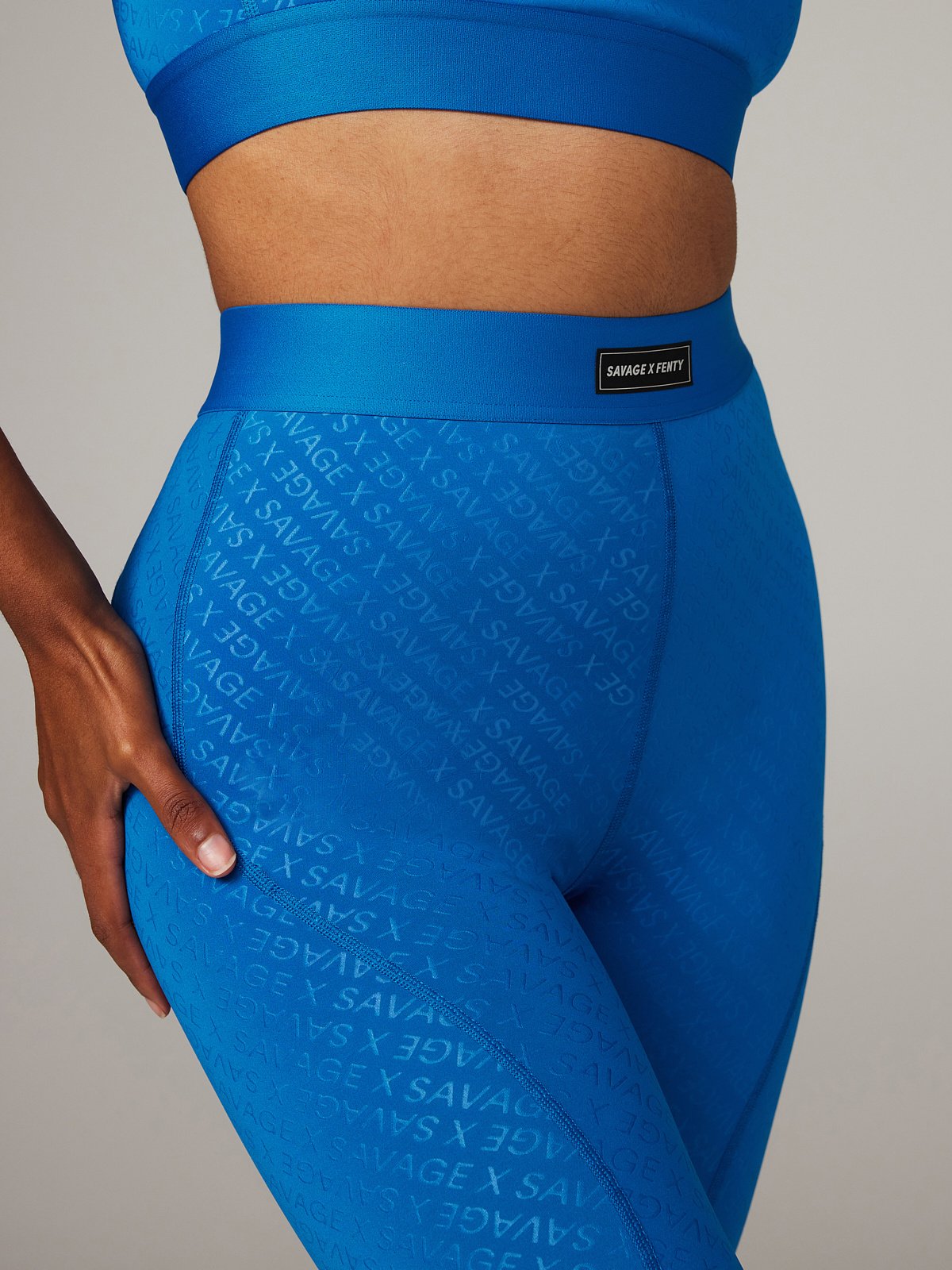 - Silicone logo patch at center front waistband