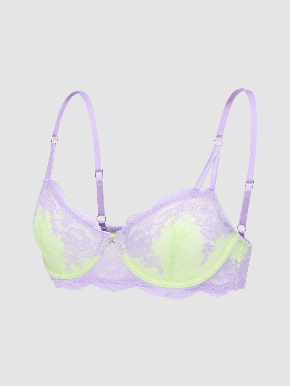 Double your pleasure in our Lacestruck Unlined Balconette Bra, featuring a lace silhouette and two eye-catching contrast hues and luxurious satin straps.