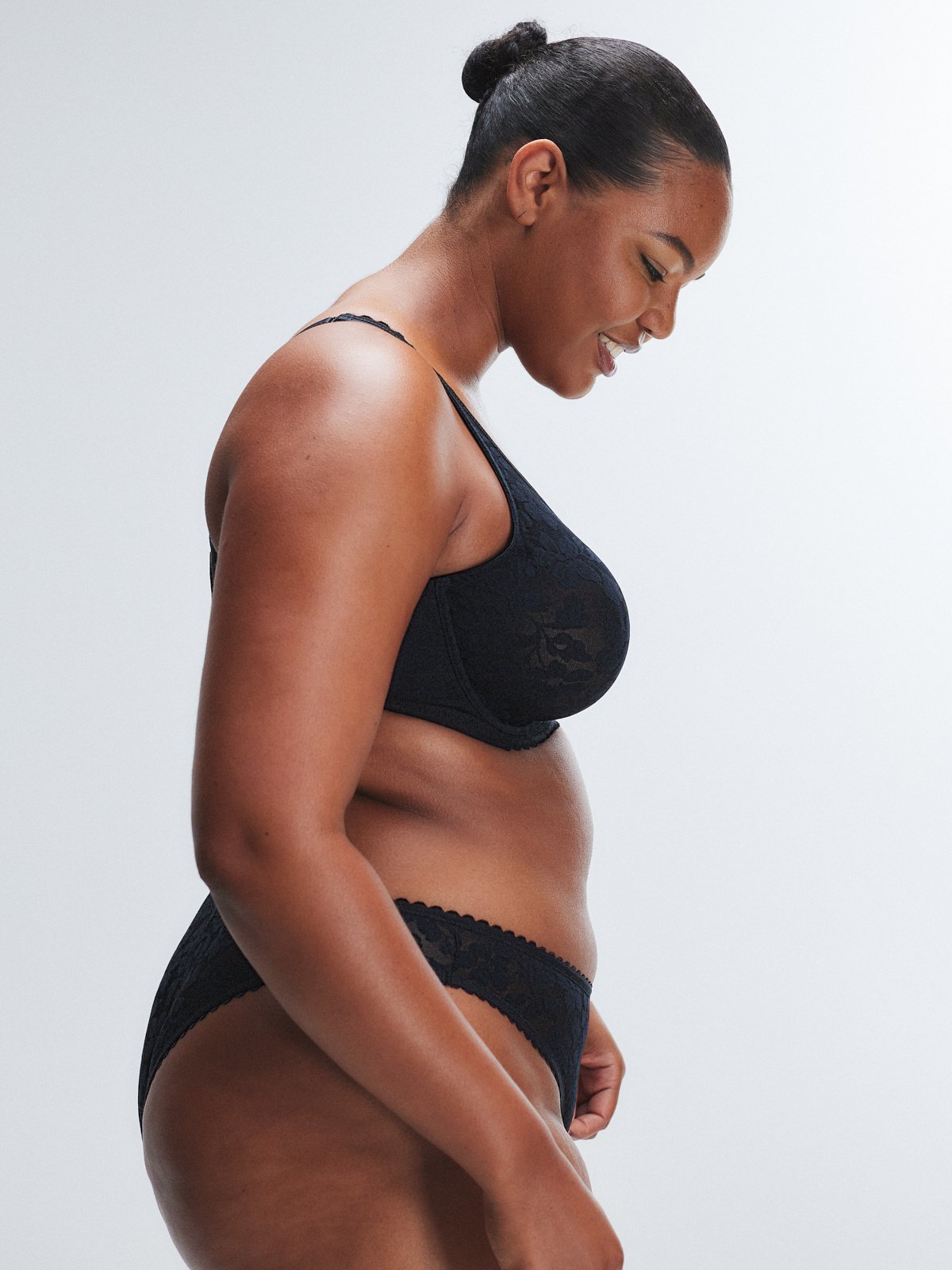 - Allover sheer floral lace that gives a smooth appearance under clothing