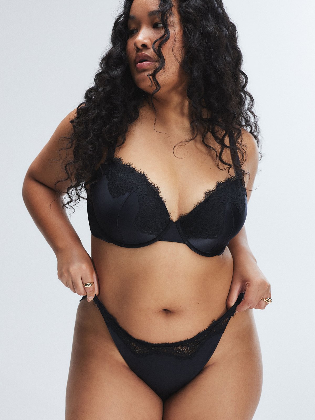 - Scalloped lace waistband and back legline