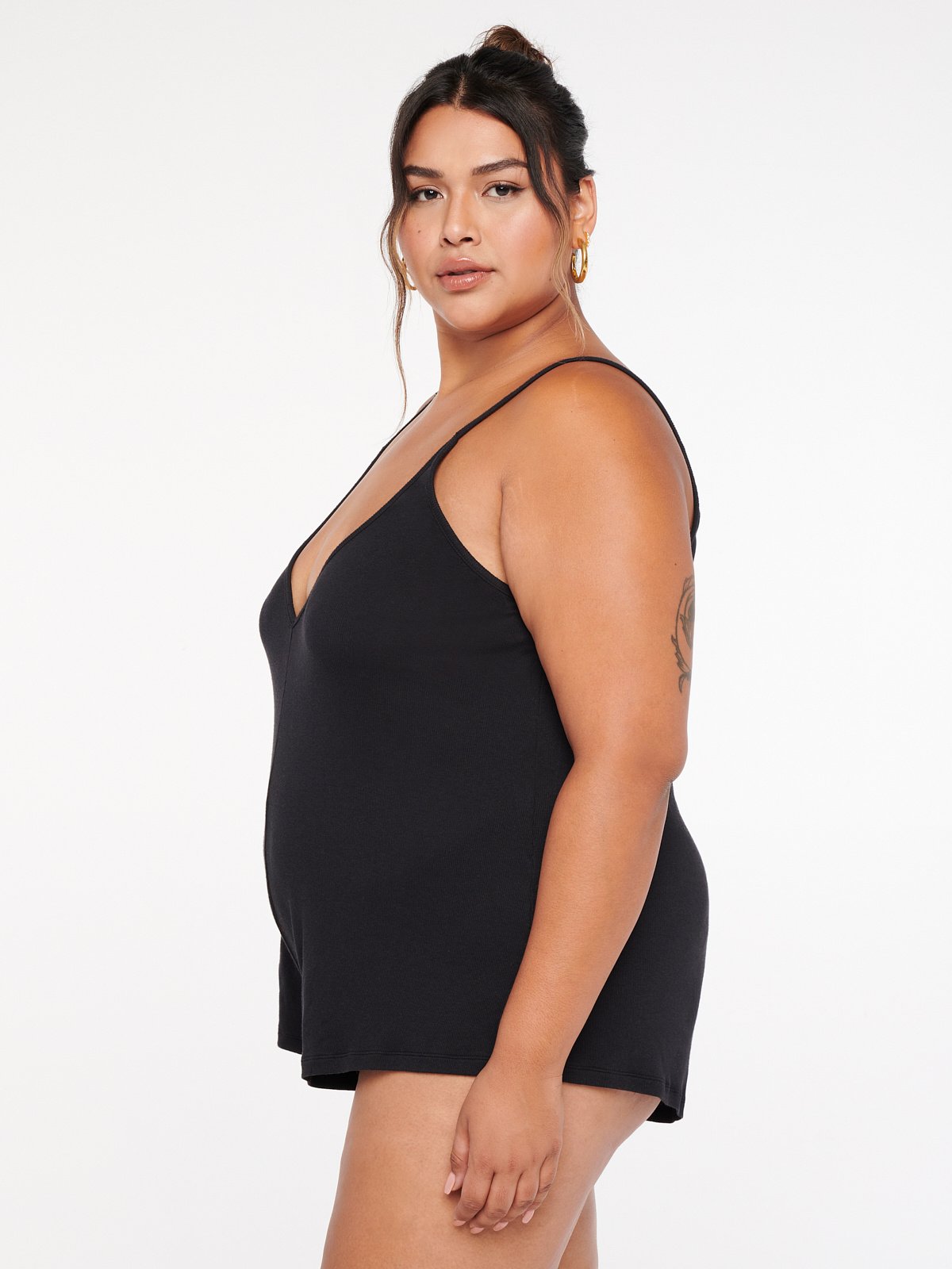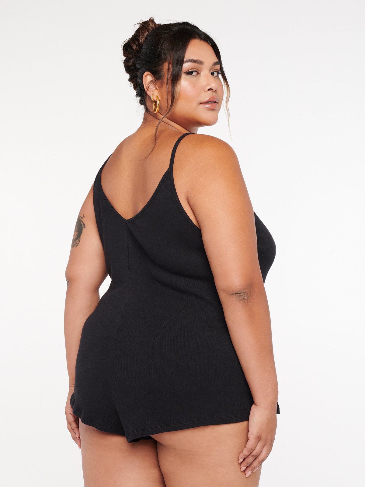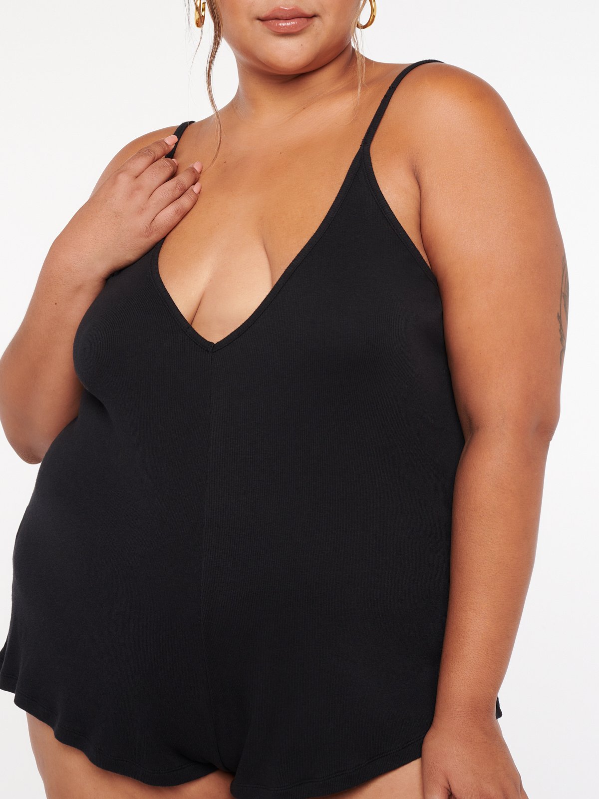 Laidback, but always ready to stunt. Our Rib Essentials Romper has a relaxed fit and features a V-neck silhouette and adjustable straps.
