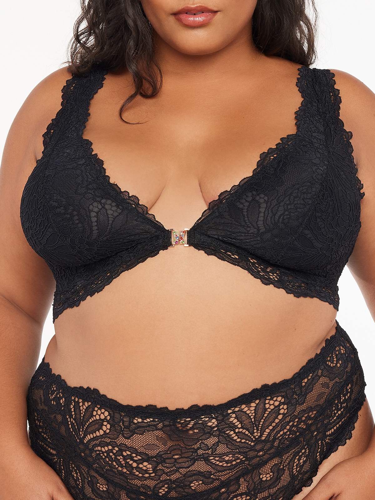 Our eye-catching Romantic Corded Lace Front-Closure Bralette is made from stretch corded lace. Featuring a front closure and unlined built-up cups for support.