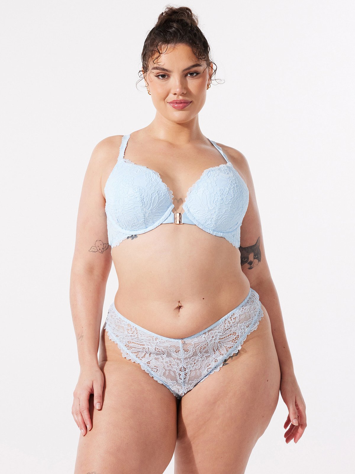Our Romantic Corded Lace Push-Up Bra features a plunging neckline, curve-enhancing padded cups, and a front closure. The racerback wing is lined with power mesh, adding comfort and support to this ultra-sexy bra.