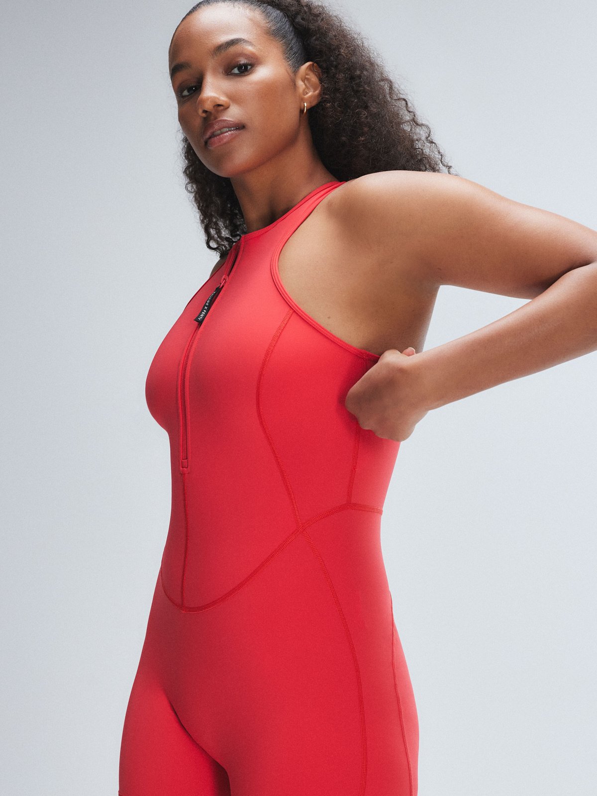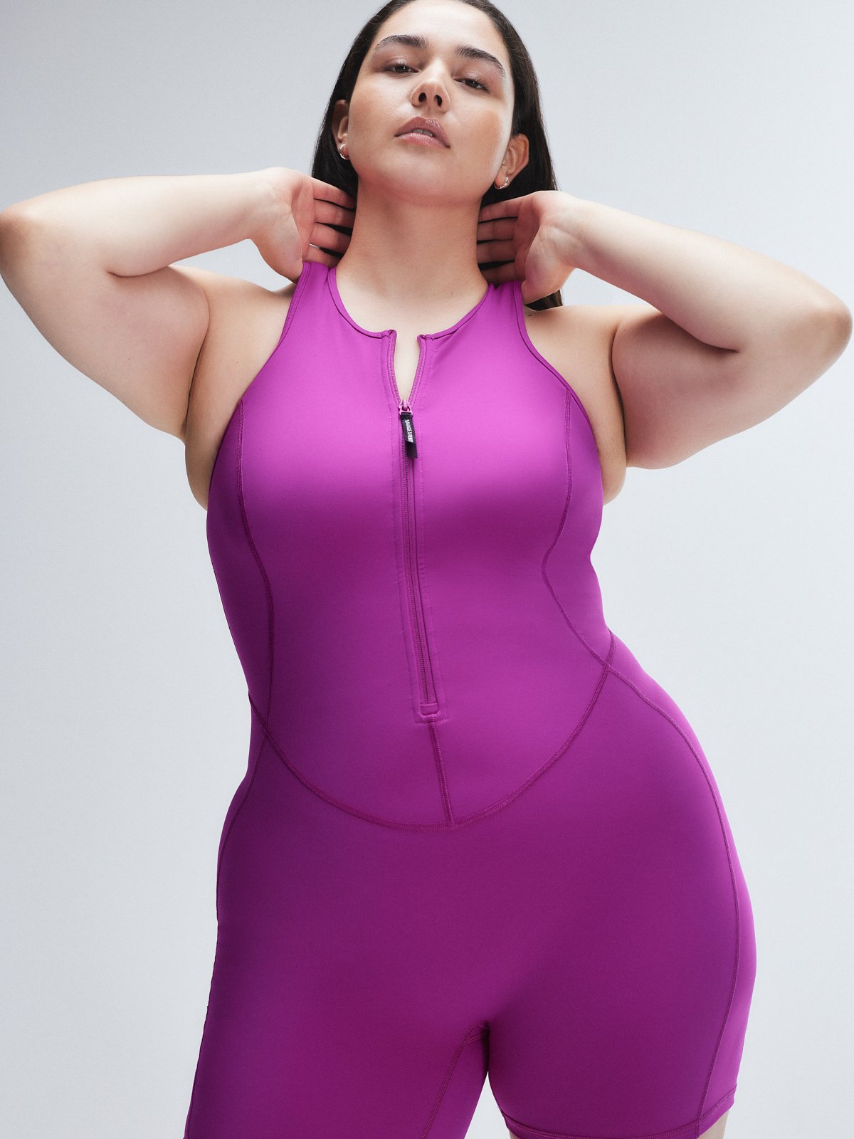 Made to perform. Our Running Hot Zip-Up Romper is made with our highest compression fabric for ultimate support and improved circulation during high-intensity workouts. Flat-lock seams allow for maximum stretch with minimal friction, so you can always go the extra mile.