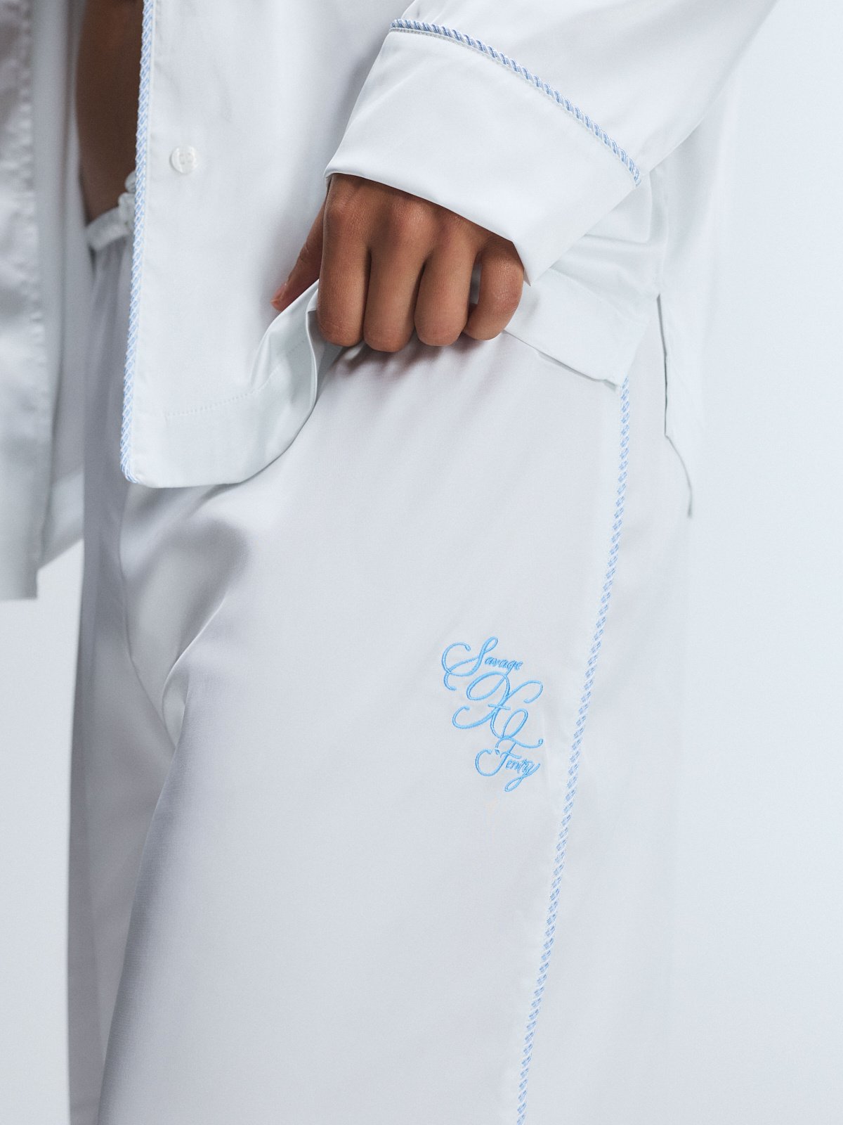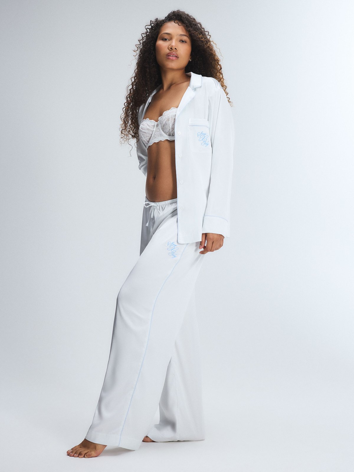 For the vow factor. Our Satin Ever After Sleep Pant features a matte stretch-satin silhouette with a relaxed fit and embroidered artwork.