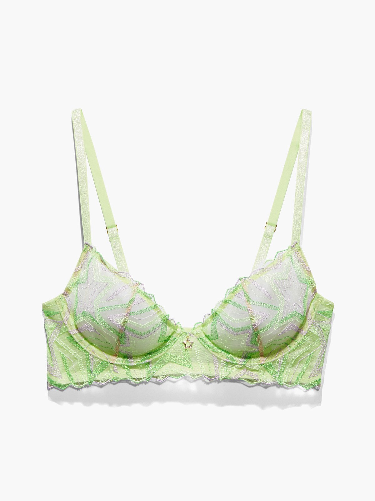 Retro disco-inspired stars define this must-have Shining Star Embroidered Unlined Demi Bra, with sheer, crystal tulle to finish the look.