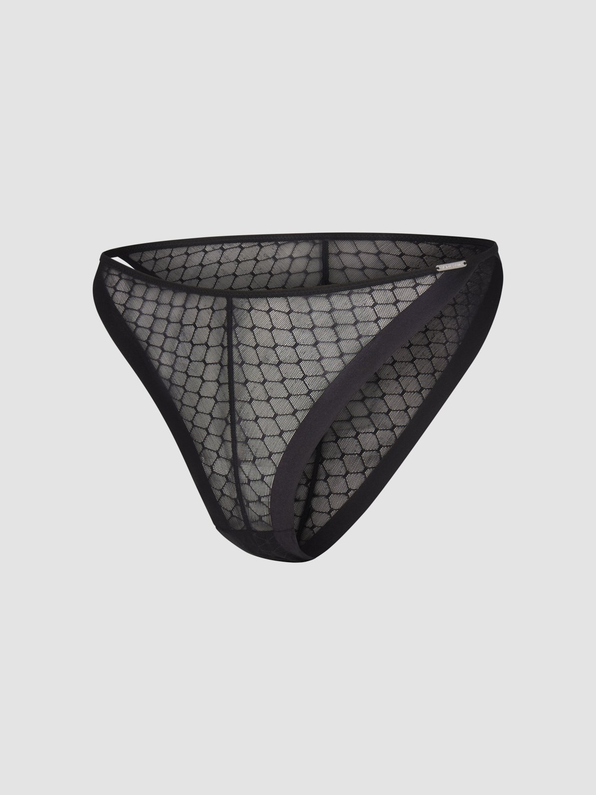 Own the moment in our Show N’ Tell Mesh String Bikini Panty features sexy mesh fabric with a diamond pattern for luxuriously breathable wear and foldover elastic at the waistline for comfortable stretch.