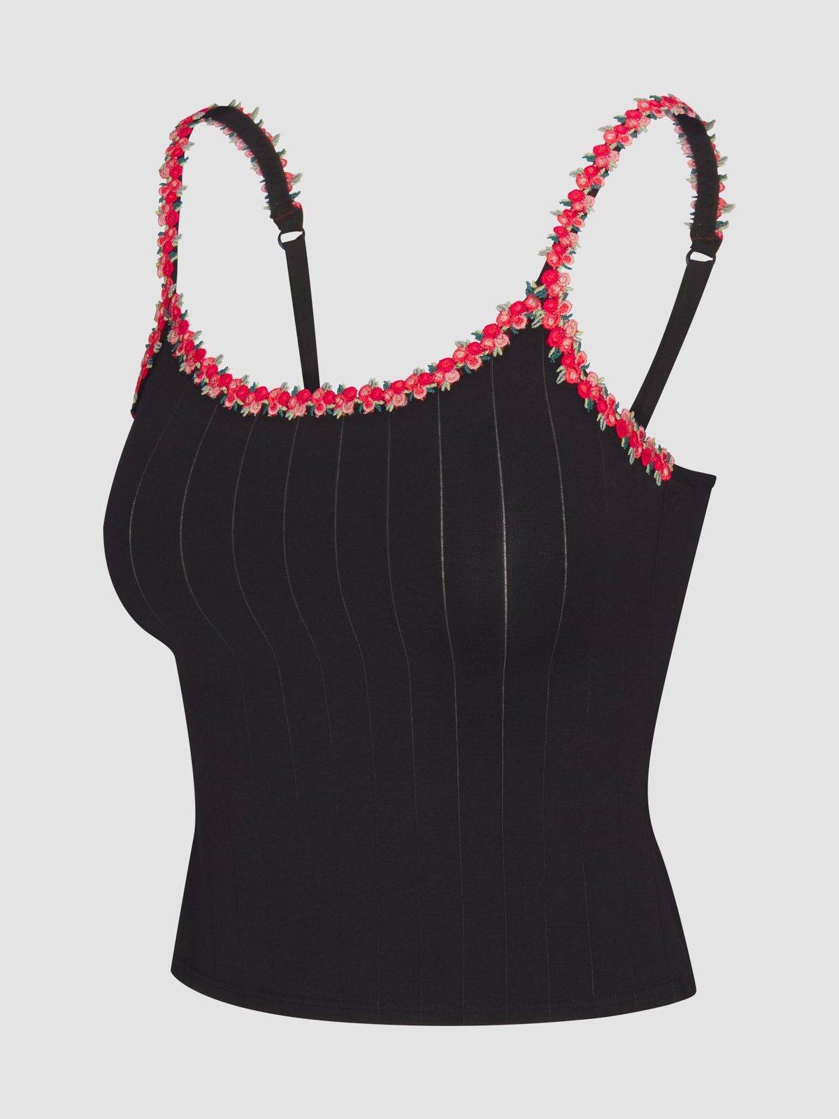 The sleekest touch. Our Sleek Stitch Rosette-Trim Sleep Cami features sexy yet flirty rosette details, adjustable straps, and delicate pin-striped fabric.