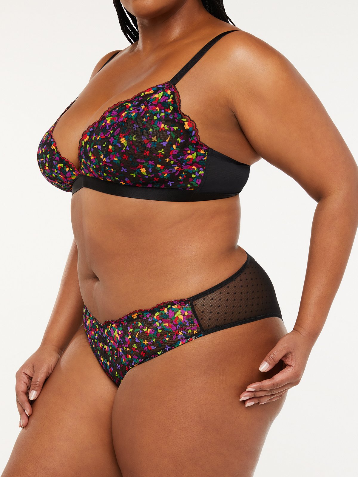 Lush flowers are always a vibe! Our sheer Steamy Floral Lace Brazilian features a stretch lace body and dotted mesh back with a strappy cutout.
