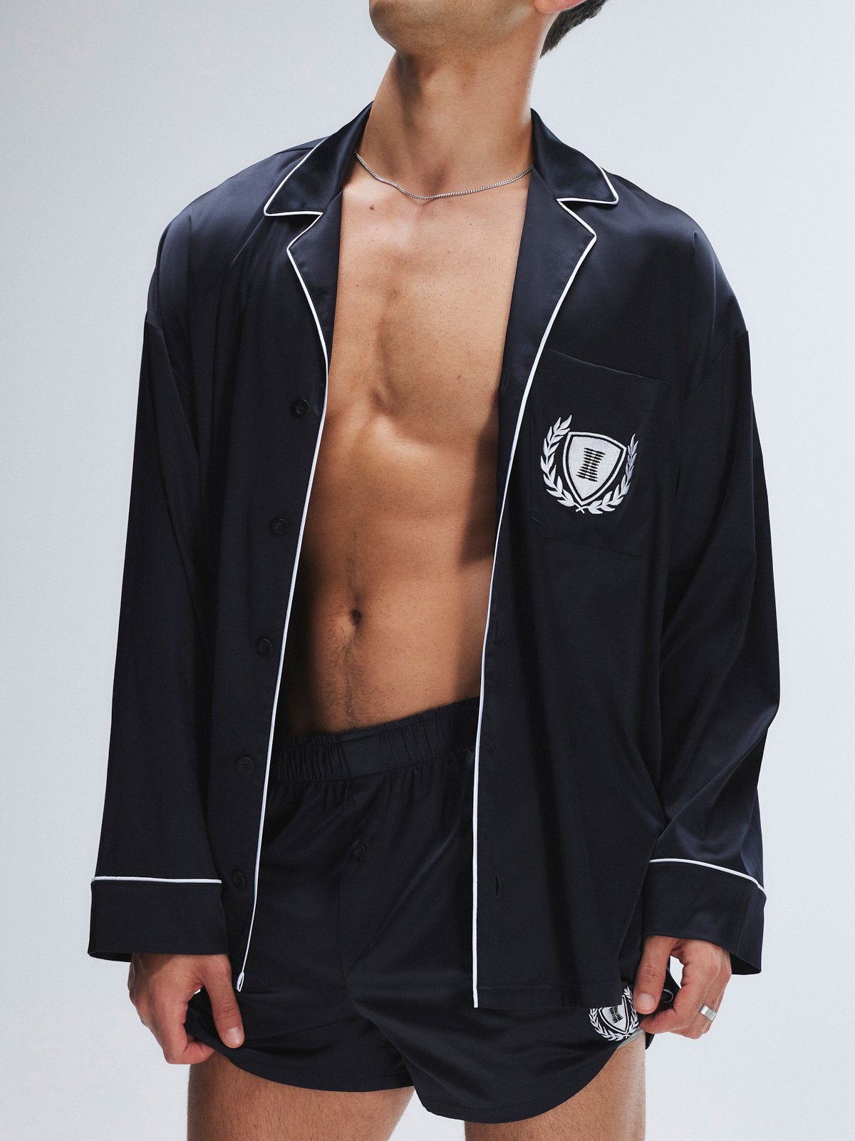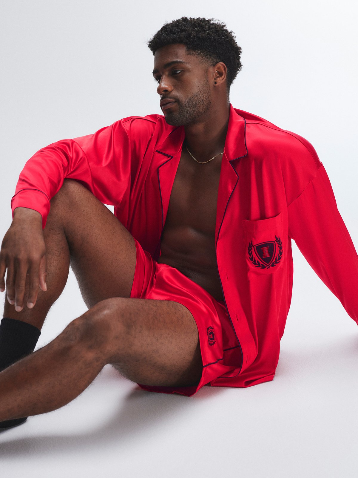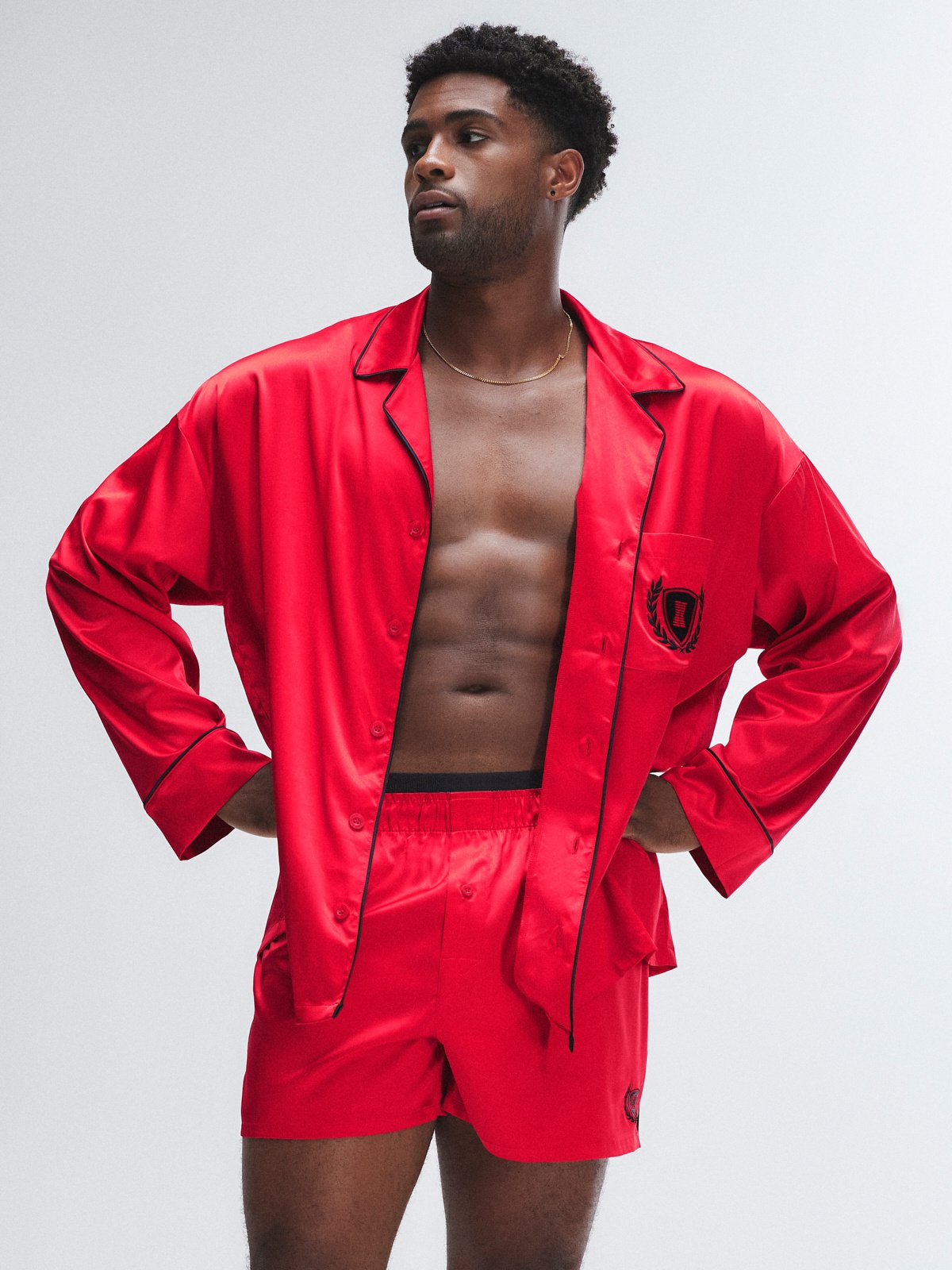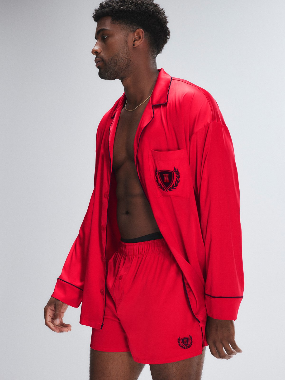 Sophistication simplified. The Classics Satin Sleep Boxers is made from a sleek satin fabric for a luxurious feel and features an embroidered logo design on the lower leg.