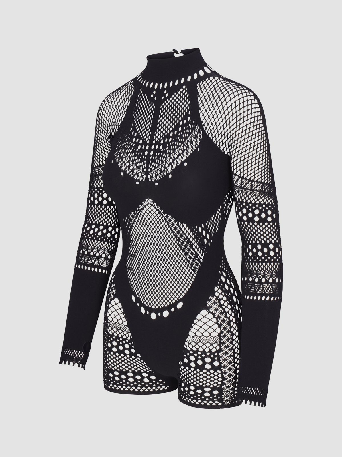 The spotlight is yours. Our Viva La Diva Seamless Romper is made from a smooth knit fabric and features a halter neckline, a cutout in back and a detailed open-knit design throughout.