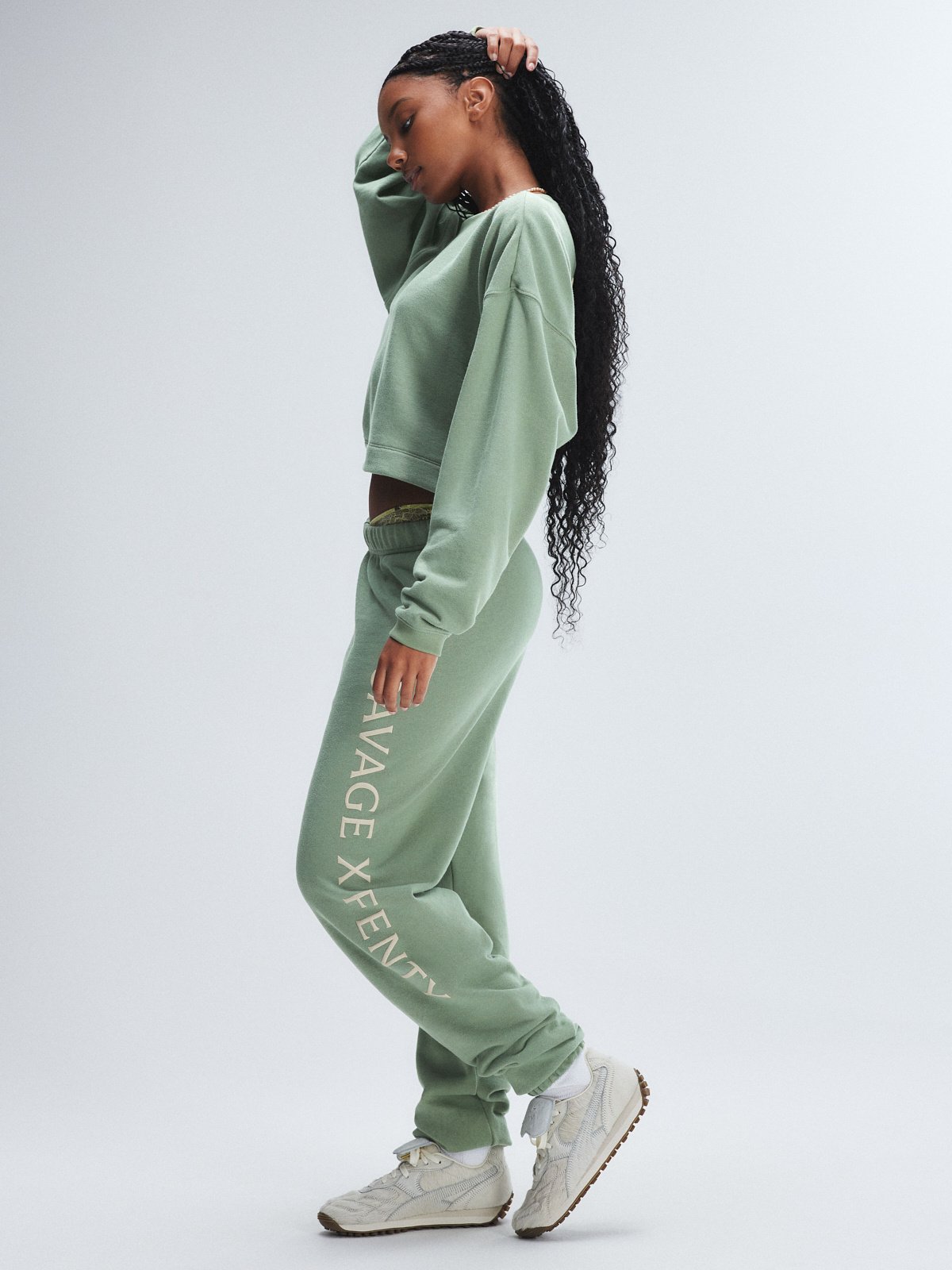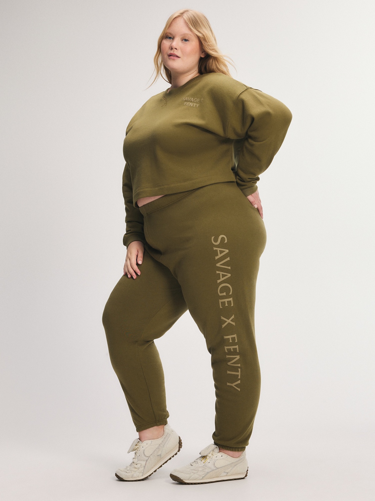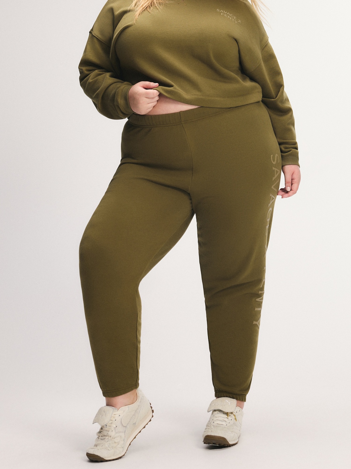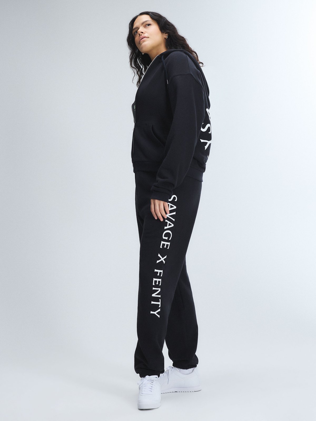 - “Savage X Fenty” 3D puff logo print at front left leg